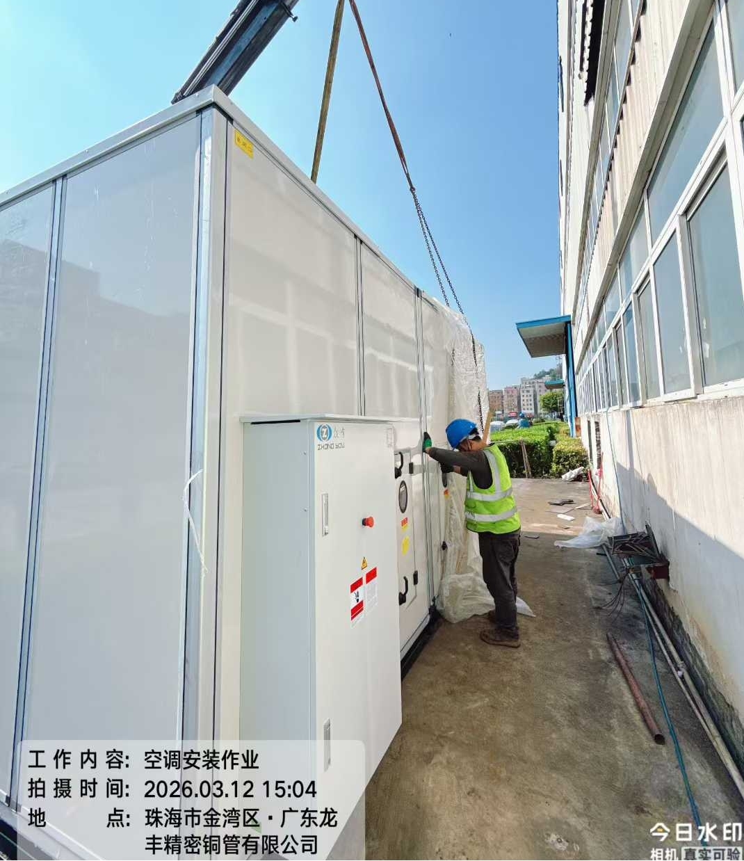 廣東龍豐精密銅管有限公司成立于2003年12月22日,是金龍精密銅管集團(tuán)旗下最大的全資子公司,是目前全球最大的精密銅管單體工廠,國(guó)家級(jí)高新技術(shù)企業(yè)。其在車間的建設(shè)中,對(duì)環(huán)境濕度的控制提出了高要求:溫度需穩(wěn)定在溫度24-26℃,相對(duì)濕度50-55% 。為此,廣東龍豐精密銅管有限公司選擇了上海非眾提供的風(fēng)冷調(diào)溫除濕空調(diào)機(jī)組,以實(shí)現(xiàn)精準(zhǔn)的車間環(huán)境控制。