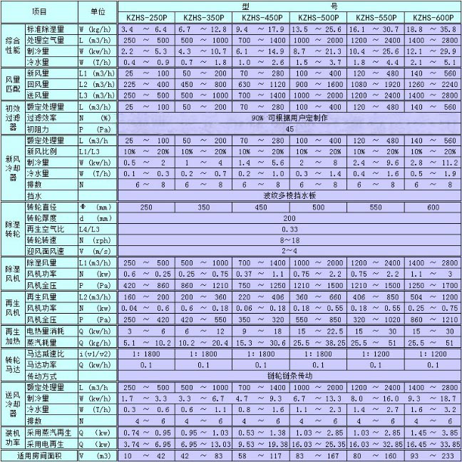 KZHS-□玻璃合片室型轉輪除濕機組技術性能