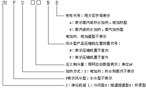 JLF(D)型風(fēng)冷凈化型冷(熱)風(fēng)機(jī)性能參數(shù)表: